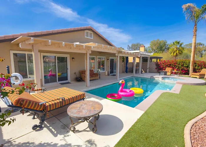 La casa de vacaciones está situada a unos 10 minutos en coche del Parque y Recinto Ferial Rancho Las Flores y a unos 15 minutos en coche del Museo de Historia del Valle de Coachella. Esta villa está situada a 4 km de lugares de ocio como el Augustine Casino.